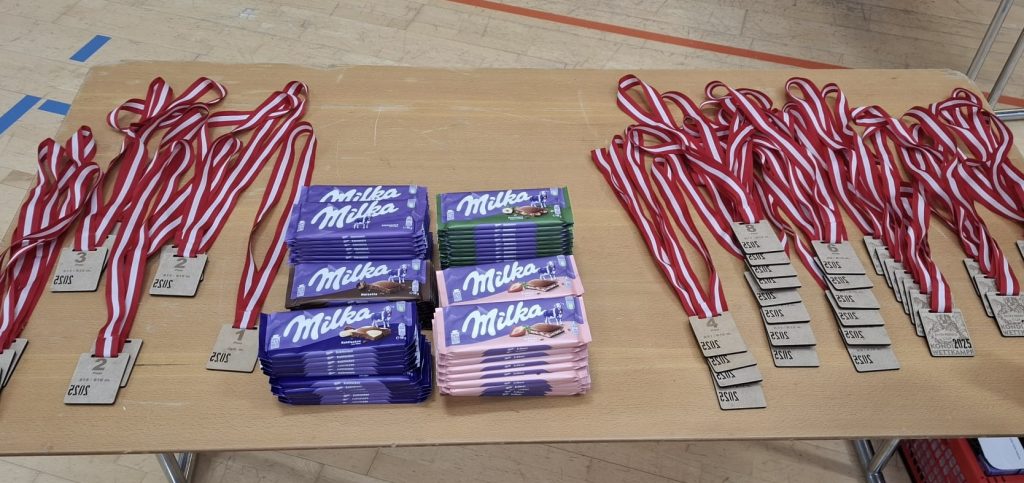 Als Belohnung wurden die Sieger mit coolen Medaillen und Schokolade belohnt. Herzlichen Dank an Sägewerk Angerer für das Sponsoring der Schokolade.
